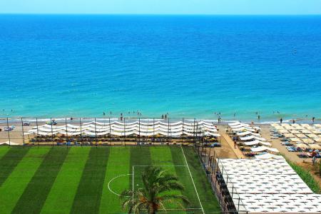 Hotelul are plaja proprie, nisip-pietris. Bar la plaja - gratuit. La piscina si pe plaja: umbrele, sezlonguri, saltele - gratuit. Prosoape de plaja - gratuit.