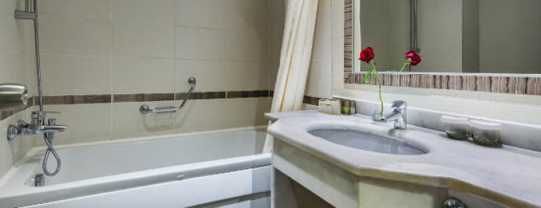 Family room-camerele sunt localizate in cladirea principala, au intre 40-45 mp; pot avea vedere partiala sau directa spre mare. Sunt formate din 2 camere.Camerele au un pat matrimonial si 2 paturi twin,canapea sau fotoliu, led tv, telefon direct,seif,minibar,balcon,baie cu cada,oglinda machiaj,aer conditionat, uscator de par,papuci de casa.