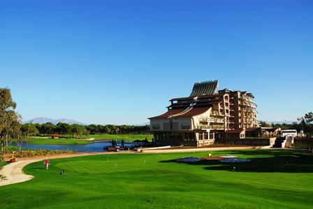 "Hotelul ocupa o suprafata de 1.410.000 mp, langa 2 terenuri de golf, la o distanta de 40 km de centrul orasului Antalya, 5 km de centrul orasului Belek, 30 km de aeroportul din Antalya.