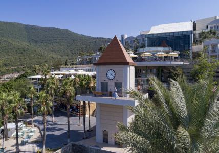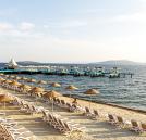 Plaja privata a hotelului este formata dintr-un ponton cu o lungime de 750 m si o zona amenajata cu nisip de 350. Umbrelele, sezlongurile, saltelele si prosoapele sunt gratuite la plaja.