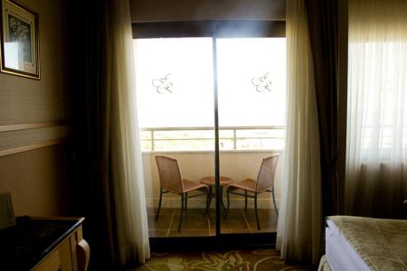 "Hotelul este situat in statiunea Lara si la o distanta de 14 km de aeroportul din Antalya si 16 km de central orasului; este amplasat pe plaja.