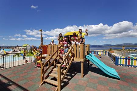 Piscine – piscina principala, piscina cu 3 tobogane, piscina de relaxare, 2 piscine pentru copii, piscina interioara incalzita pentru adulti si cu sectiune pentru copii.