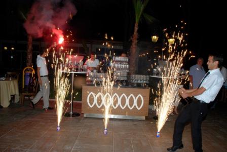 6 baruri- bar la piscina, lobby bar, snack bar, beach bar, garden bar, disco bar, unde se pot servi gustari, bauturi racoritoare, bauturi alcoolice locale. Toate bauturile imbuteliate, de import si fresh-urile sunt contra cost.