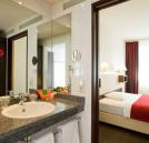 camera dubla standard este dotata cu: internet wireless gratuit, aer conditionat, TV satelit, baie cu dus, uscator de par, minibar, telefon direct, birou.