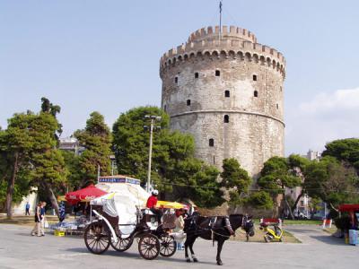 Sau Lefkos Pyrgos, datand din secolul XVI, este un simbol al orasului Salonic, desi nu mai este de multa vreme chiar alb. Turnul a fost construit ca parte a zidurilor de aparare ale orasului, apoi a devenit inchisoare otomana si loc de executii. Astazi, cateva etaje ale turnului gazduiesc Muzeul Istorieisi Artei Salonic. La ultimul etaj se afla o cafenea.