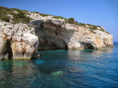 Atractii turistice: Grotele albastre Situate in partea de nord a insulei, in zona Capului Schinari, Grotele albastre reprezinta, de fapt, o formatiune geologica neobisnuita, care creeaza un peisaj marin inconfundabil, atat prin forma stancilor, cat si prin albastrul intens al apei, vizibil mai ales in lumina pura a diminetii. Cea mai mare este Grota Kianoun la care se poate ajunge usor cu barca, din portul St. Nicholas.