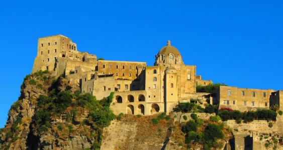 Castelul: Castello Aragonesse este unul dintre monumentele cele mai izbitoare pe insula. Acesta se află pe o mică insulă în apropierea zonei Ischia Ponte. Castelul se poate ajunge pe un pod de piatră. Mică insulă se află la aproximativ 113 de metri inaltime, iar urcare poate fi făcută prin utilizarea unui ascensor modern, care a fost instalat în anii saptezeci sau pe jos. Castelul a fost construit în 1441 de Alfonso D'Aragona deasupra ruinelor unui vechi fort care datează din 474 î.Hr. Acest castel fortificat a fost folosit pentru a proteja populația Ischia de atacurile piraților. In secolul al 16-lea, aproape 1900 de familii locuiau în castel.