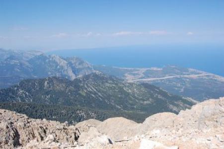 Muntele Tahtali este situat chiar in centrul zonei turistice a Antalyei, la o altitudine de 2366 m si este singura formatiune muntoasa care depaseste 2300 m si care este localizata atat de aproape de mare. Pana la inaltimea de 1700-1800 m este acoperit de paduri, dupa aceasta altitudine incepe creasta stancoasa.