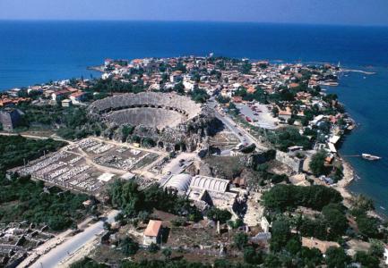 Fostul sat pescaresc, Side se gaseste la aproximativ 80 de km de Antalya. Face parte dintre cele mai importante statiuni turistice din Turcia. Este populara datorita plajelor nisipoase fine, apei caldute a marii care se adînceste încet, precum si a ruinelor clasice de aici.